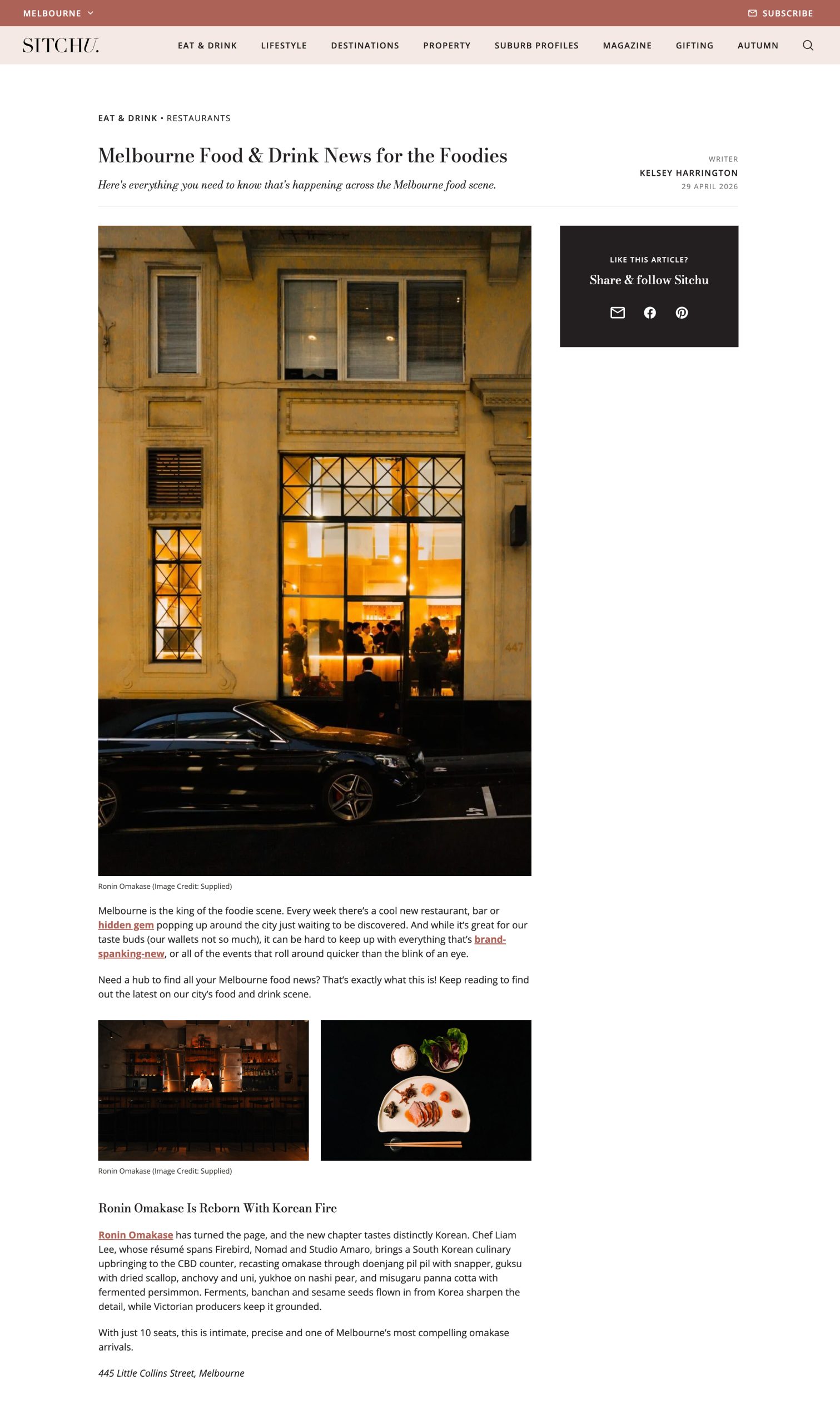 “Ronin Omakase has turned the page, and the new chapter tastes distinctly Korean. Chef Liam Lee, whose résumé spans Firebird, Nomad and Studio Amaro, brings a South Korean culinary upbringing to the CBD counter, recasting omakase through doenjang pil pil with snapper, guksu with dried scallop, anchovy and uni, yukhoe on nashi pear, and misugaru panna cotta with fermented persimmon. Ferments, banchan and sesame seeds flown in from Korea sharpen the detail, while Victorian producers keep it grounded.